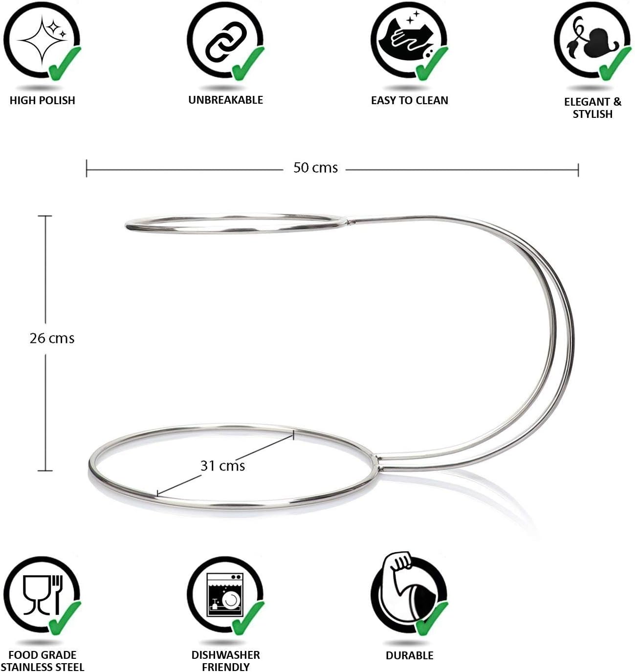 Elegant 2 Tier Polished Silver Cake StandShowcase your culinary creations with this sleek and modern 2-tier cake stand. Featuring a brilliant, polished silver finish and clean lines, this stand is a sophisticated centerpiece perfect for afternoon tea, engagement parties, birthdays, and intimate wedding celebrations.Crafted from durable, lightweight stainless steel, this versatile serving stand is designed to beautifully display light desserts, pastries, cupcakes, and sponge cakes.Key Features & Specifications: