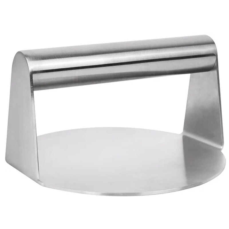 - Our stainless steel burger smasher is suitable for frying pans, stove-top pans, cast iron grills, etc.. You can use our burger press for meat, steaks, beef, bacon, chicken, vegetables, burgers, sandwiches, patty, sausages, paninis, tortillas, cheese, toast, etc.. The burger grill press is nice kitchen tool for indoor/outdoor barbecue, kitchens, restaurants, and more. The heavy duty burger press is multifunctional and practical, ideal as a great gift for friends and family.